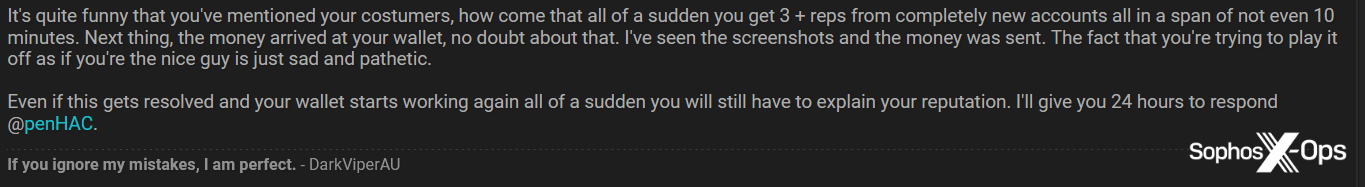 Unsurprisingly, while scamming threat actors might be lucrative, it can also be a dangerous game. We observed a few instances where threat actors weren’t just indignant about being scammed – they wanted to get even.