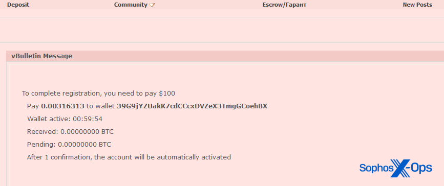 We also noted a website, named ‘xsx’, which doesn’t look anything like the genuine XSS site but may be designed to fool inexperienced users. This site demands a $100 registration fee (a very common scam amount, as we’ll see in Part 3 of this series), and is reported on the XSS forum as a ripper site.