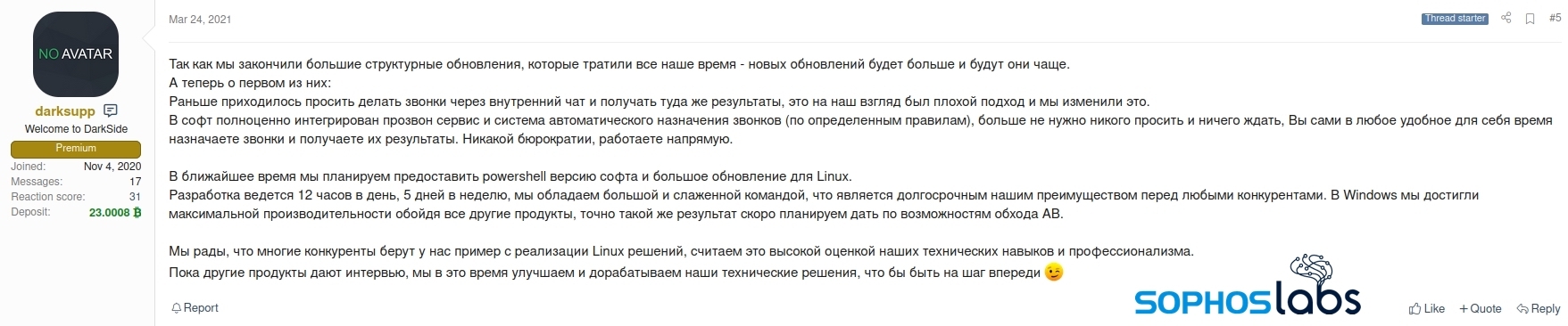 他のランサムウェアとは違って DarkSide は Windows だけでなく Linux コンピューターも暗号化するため、大企業を狙う攻撃者にとってはより使い勝手の良いツールです。