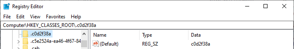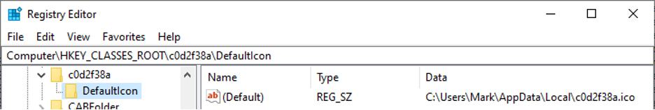 DarkSide は、イメージファイル (アイコン) を、ファイル名を変更時と同じ 8 文字の拡張子に由来する名前をつけて、「%APPDATA%\Local」というディレクトリにドロップします。この例では、拡張子は「.c0d2f38a」です。そして、「HKEY_CLASSES_ROOT」にある Windows レジストリキーを書き出し、そのアイコンファイル用に生成した独自のファイル拡張子をファイルに関連付けます。すると暗号化されたファイルは独自のアイコンで表示されるようになります。