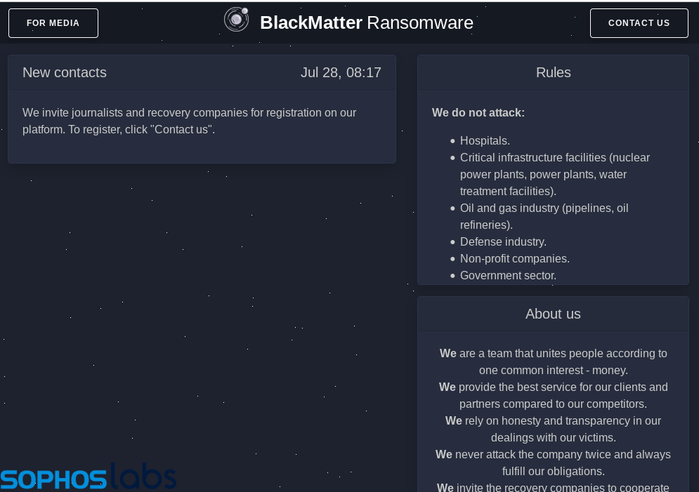 SophosLabs は BlackMatter およびその背後の攻撃者の主張を詳しく調べ、実際に何が起こっているのかを調査しました。