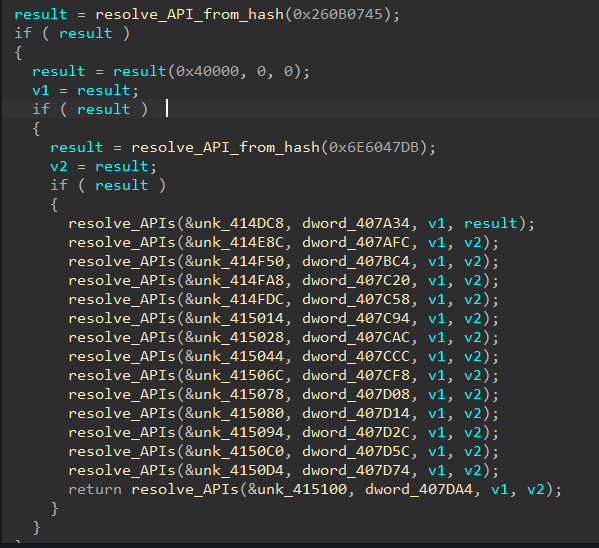 LockBit uses exactly the same implementation as BlackMatter to resolve API calls, with one exception: LockBit adds an extra step in an attempt to conceal the function from debuggers.