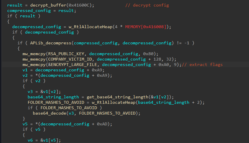 Both ransomware contain embedded configuration data inside their binary executables. We noted that LockBit decodes its config in a similar way to BlackMatter, albeit with some small differences.